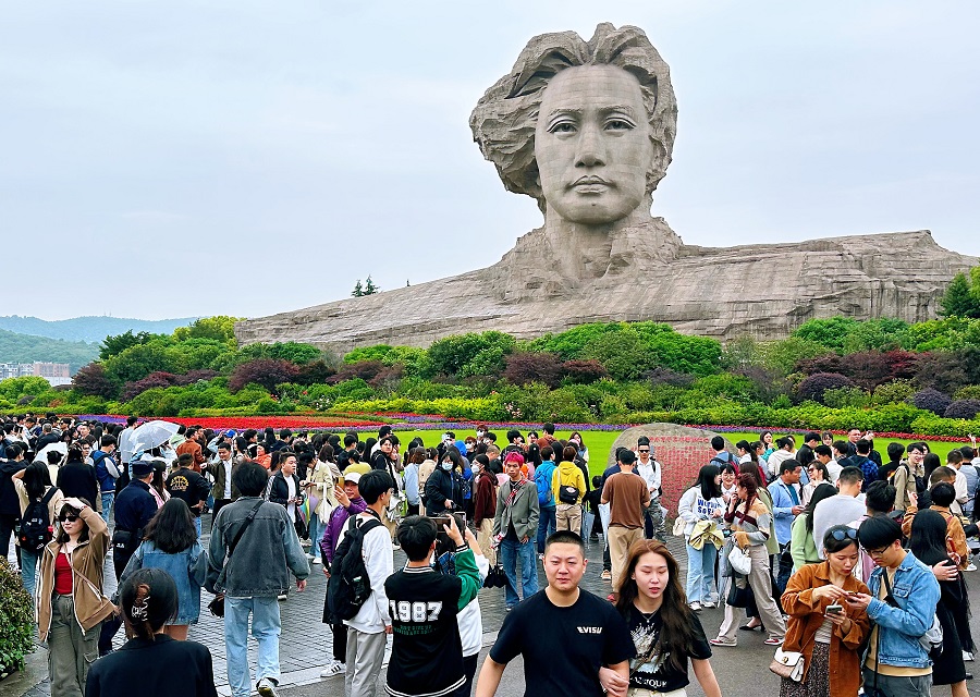 4月29日,游客在长沙橘子洲景区游览。当天是“五一”假期首日,长沙各大景区景点迎来客流高峰。湖南日报全媒体记者 徐行 摄