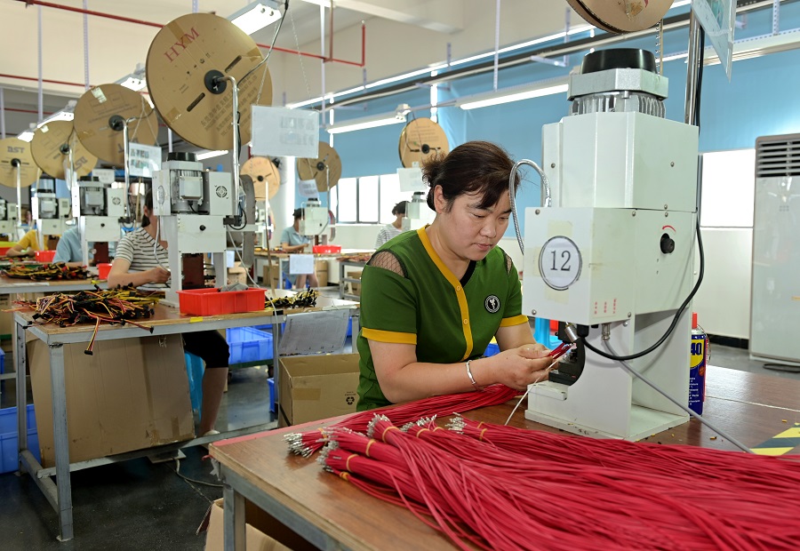 6月29日,洞口县工业园区慧创电子有限公司,员工在生产电子产品。今年来,该县工业园区企业在当地稳岗用工、金融支持等系列措施的帮扶下,呈现产销两旺好势头。滕治中 摄