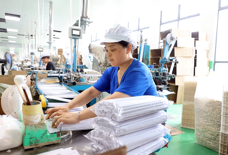 7月14日,益阳市泥江口镇竹科技产业园,车间里设备运转不停,一双双竹筷完成包装、下线,准备运往日本、韩国等地。该镇是全国最大的快消竹筷生产基地之一,产品远销62个国家和地区。 赵持 摄