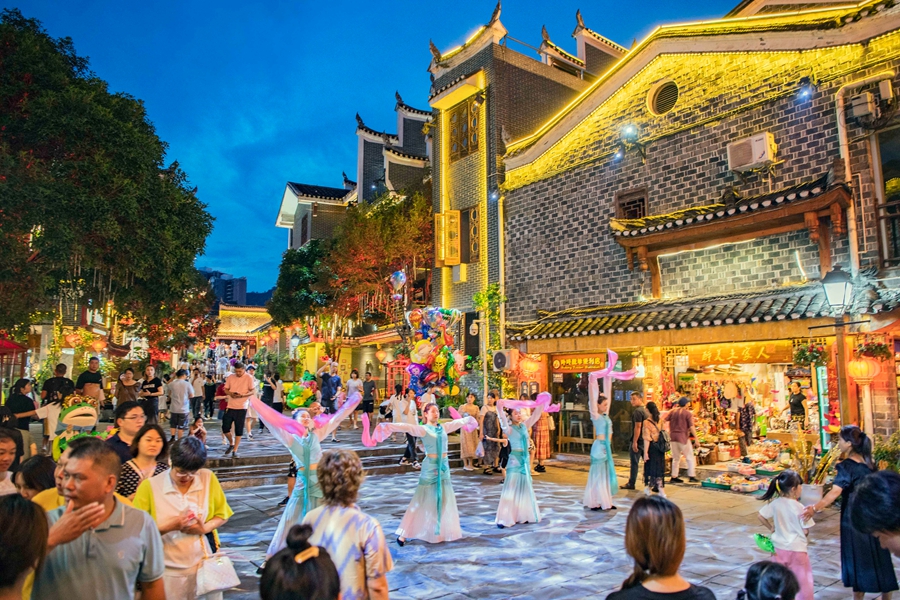 8月5日晚,吉首市乾州古城夜色绚丽,游客如云。