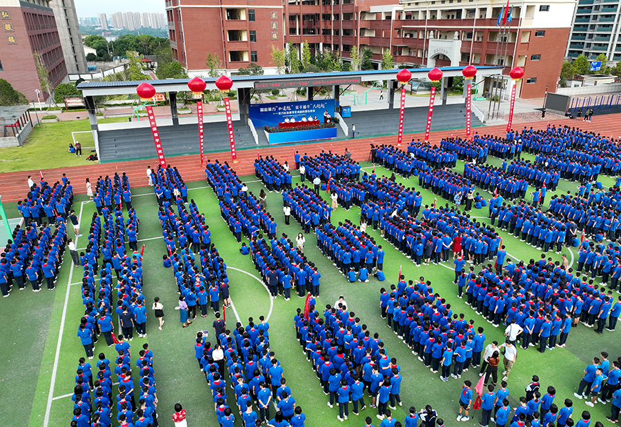 9月4日,长沙市长郡外国语实验中学秋季开学第一天,师生在进行开学典礼。精彩的武术表演、整齐的队列展示了学生良好的精神面貌,老师也为同学们送上鼓励与祝福。 湖南日报全媒体记者 傅聪 摄