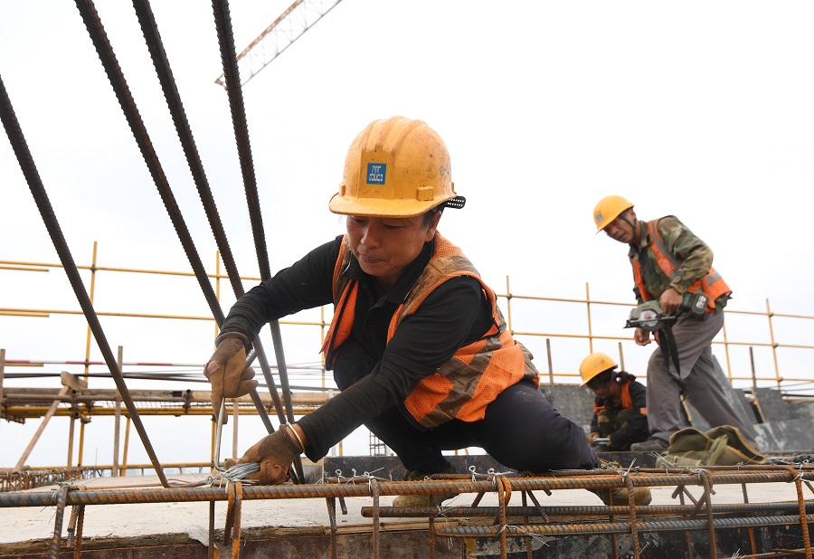 10月6日,位于湘江新区的中建五局三公司同有科技存储系统及SSD研发智能制造基地项目,工人在进行1号栋屋面构架施工。“双节”期间,该项目200余名建设者在保证质量和安全的前提下,加快推进项目建设。湖南日报全媒体记者 田超 通讯员 王蕾 摄影报道