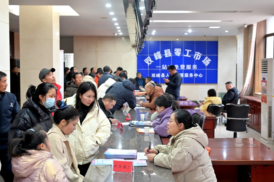 2月21日,双峰县人力资源和社会保障局,求职者在零工市场了解岗位信息。当天,该县举行2024年春风行动现场招聘会暨零工市场启动仪式,120余家企业提供5600余个就业岗位,吸引众多求职者前来应聘。 李建新 朱勇军 摄影报道(湖南图片库)