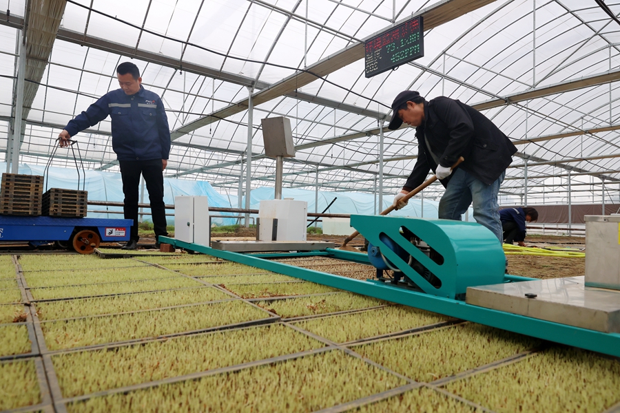 3月14日,益阳市资阳区南方智能育秧(苗)中心,工作人员在加紧育秧(苗)。该中心是由湖南沃工农业服务有限公司联合湖南农业大学共同建设,去年2月开始运行,采用了最新的智能化水稻育秧流水线作业,单台机器一天可育秧(苗)16000盘,能满足500亩稻田的供秧需求。 湖南日报全媒体记者 赵持 通讯员 彭翔 刘亮 摄影报道