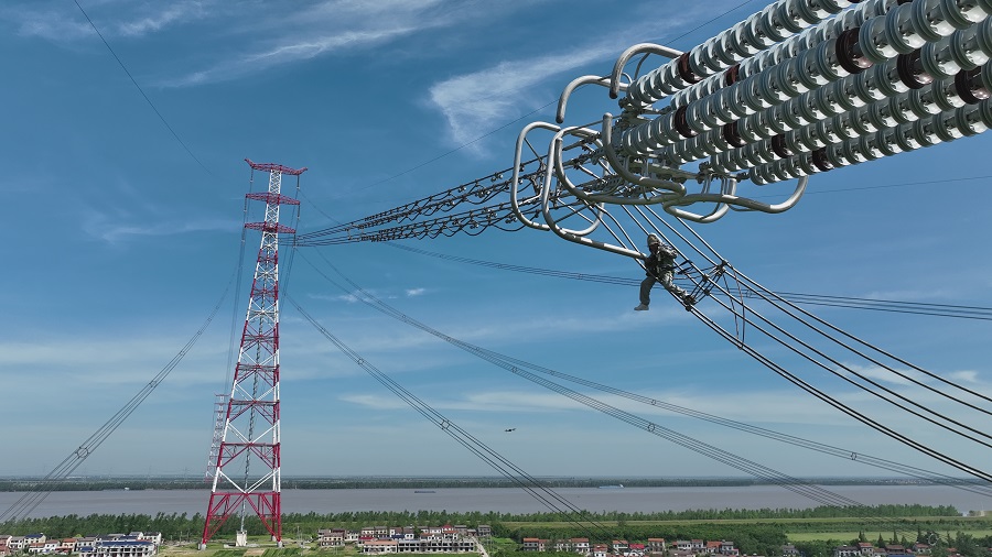 湖南首次特高压交流线路实现大跨越档“小飞人”法带电作业