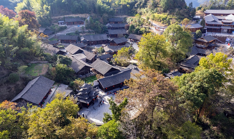 11月7日,永顺县灵溪镇双凤村层林尽染,与鳞次栉比的土家族建筑相映成趣。近年来,该县将农村人居环境整治与乡村旅游深度融合,给美丽乡村带来“美丽经济”,助力村民增收致富。湖南日报全媒体记者 李健 童臻熙 摄影报道
