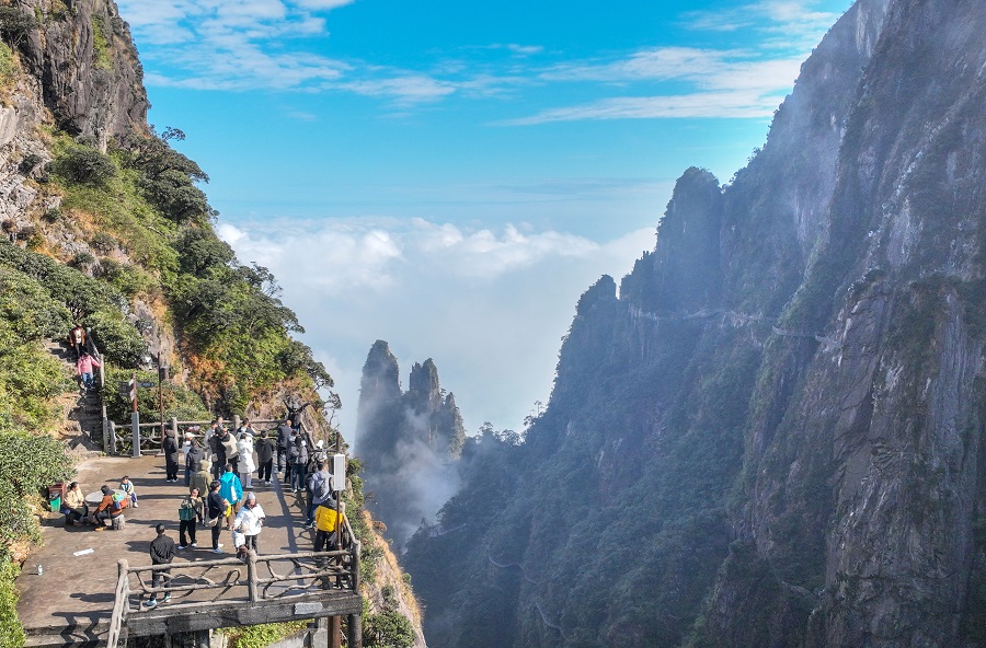 12月8日,宜章县莽山旅游区出现云海奇观,让前来观光的游客惊叹不已。入冬以来,莽山旅游区开启“梦幻仙境”模式,云海、雾凇景观频频出现,吸引众多游客前来打卡游玩。邓文超 摄