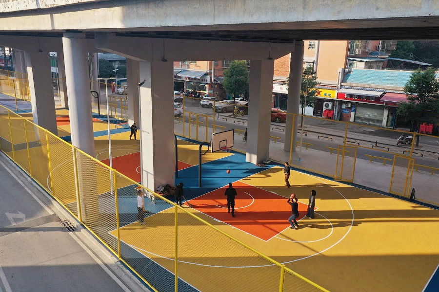 1月2日,长沙市开福区东风路高架桥下,市民在新建成的运动公园打球。该桥地处伍家岭街道和东风路街道毗邻区域,过去桥下空间仅用作停车和物资堆放场所。去年下半年,开福区城管执法局精心设计,通过基础设施的修复和完善,使该桥桥下空间功能全面提升。目前已建成桥下运动公园、火车站主题儿童乐园、文化展示区等,周边居民又多了一处休闲娱乐健身的好去处。湖南日报全媒体记者 田超 摄