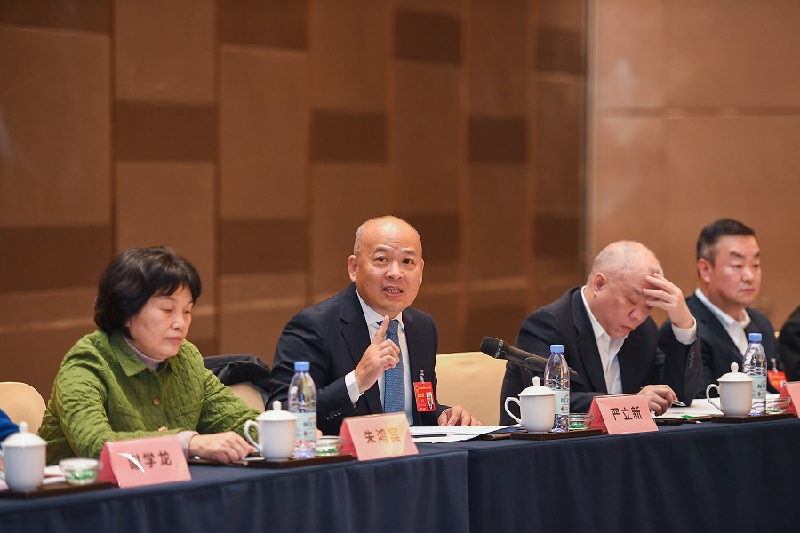 1月14日下午,陈令伟委员(中)针对促进保险行业健康发展建言。湖南日报全媒体记者 徐行 摄