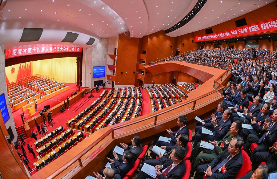 1月14日上午,湖南省第十四届人民代表大会第三次会议在省人民会堂隆重开幕。湖南日报全媒体记者 郭立亮 摄