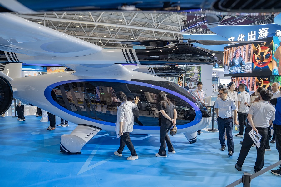 5月26日,深圳国际会展中心,观众在文博会参观低空飞行器。当天,第二十一届中国(深圳)国际文化产业博览交易会闭幕。本届文博会以“创新引领潮流 创意点亮生活”为主题,展现出诸多亮点,吸引了全球目光。湖南日报全媒体记者 李健 摄