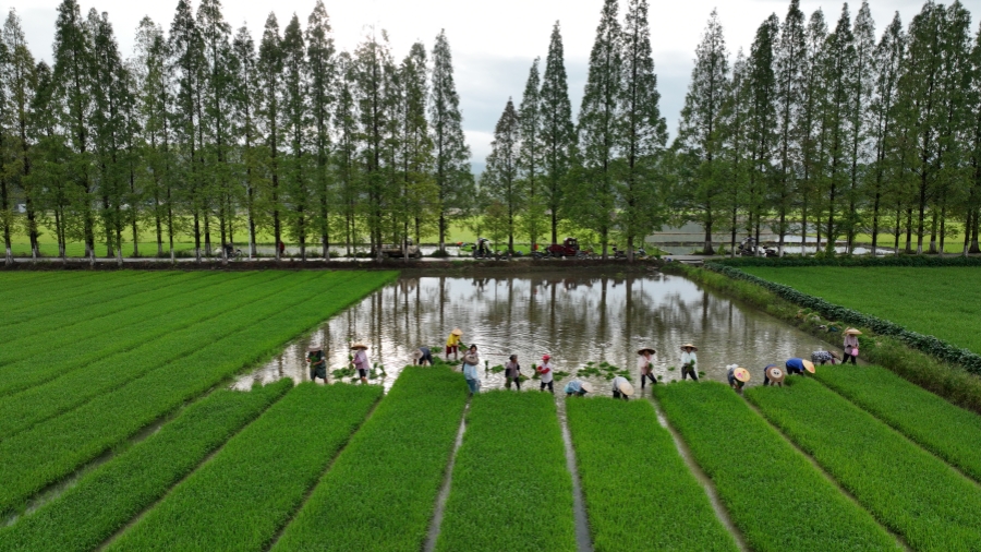 7月22日,常宁市三角塘镇,农民正在起秧。大暑节气,当地农民抢抓农时,忙碌在田间地头。 郭宜庚 摄(湖南图片库)