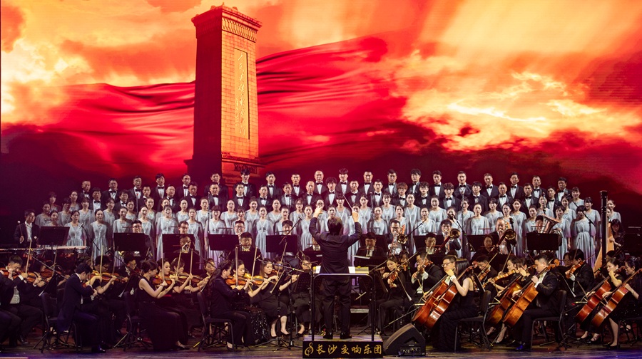 9月28日晚,大型原创交响组歌《和平之声》在湖南大剧院首演。《和平之声》由湘籍作曲家孟勇作曲,词作家王晓岭及湘籍词作家金沙、肖正民作词,著名歌唱家雷佳、王丽达等演唱,长沙交响乐团演奏。演出融合交响乐、合唱、民间曲艺等艺术形式,旨在纪念中国人民抗日战争暨世界反法西斯战争胜利80周年。湖南日报全媒体记者 傅聪 龙文泱 摄影报道