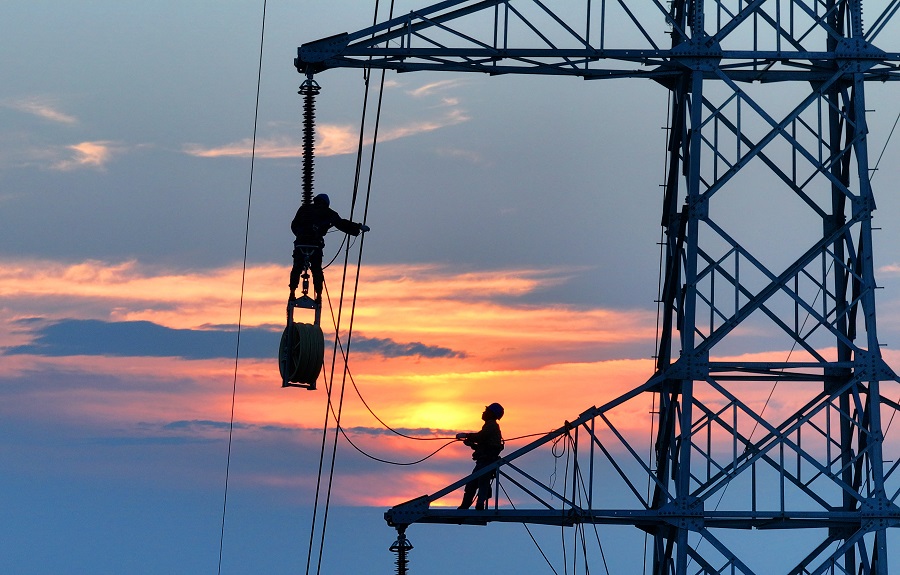 10月15日,衡阳市蒸湘区雨母山镇,施工人员在进行高塔架线作业。“宁电入湘”工程全面投产后,为充分利用好资源,保障用电可靠性,国网衡阳供电公司加紧实施辖区内电网加强和改造工程。施工人员抢抓工期,全力推进高塔线路架线工作,确保项目按期高质量完成,为地区经济发展提供可靠电力保障。曹正平 彭国平 摄影报道(湖南图片库)