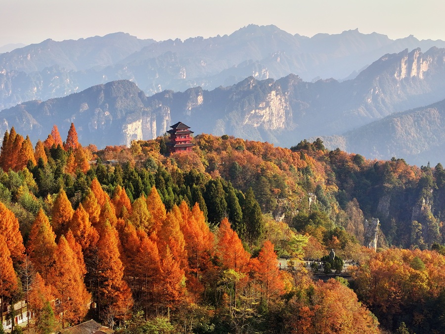 11月15日,初冬时节的张家界国家森林公园天子山,连绵峰林在五彩树木的装点下,更显诗情画意,美不胜收。湖南日报全媒体记者 郭立亮 通讯员 吴勇兵 摄影报道