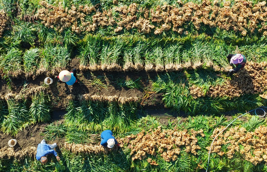 11月24日,汝城县土桥镇,村民在采收小黄姜。初冬时节,该镇种植的6000亩小黄姜喜获丰收,村民抢抓晴好天气采收,满足市场需求。近年来,该县大力扶持生姜产业,成为华南最大生姜集散地,产品远销中东,有效带动农民增收。曹正平 段欣成 摄影报道