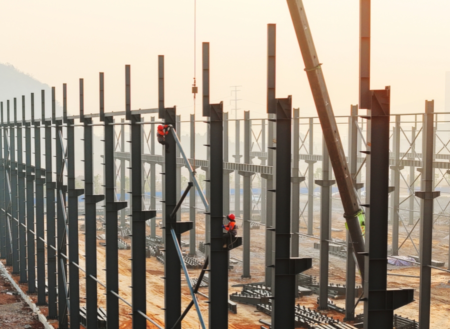 12月18日,嘉禾高新技术产业开发区,工人在进行钢结构标准厂房施工。近年来,该县依托锻铸造产业优势,进一步优化营商环境,推进产业园区项目建设,有效带动了产业链的升级转型与提质增效,助力县域工业经济高质量发展。黄春涛 摄(湖南图片库)
