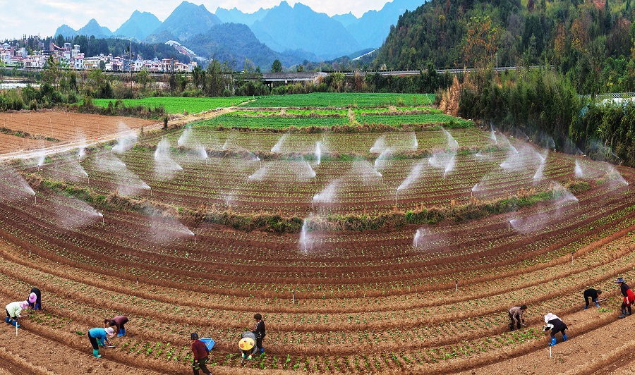 1月4日,嘉禾县晋屏镇,村民在蔬菜基地移栽莴笋苗。近年来,当地立足土地资源优势,采取“订单+轮种”模式,大力发展特色蔬菜产业,让村民种无忧、地不闲、销不愁,有效实现农业增效、农民增收。黄春涛 摄(湖南图片库)