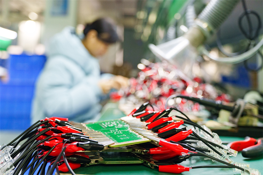 1月22日,位于永州市冷水滩区的永州市诺方舟电子科技有限公司生产车间,工人在生产线上赶制订单产品。 新年伊始,冷水滩区各企业铆足干劲忙生产,全力冲刺“开门红”。雷中祥 蒋凌志 摄影报道(湖南图片库)