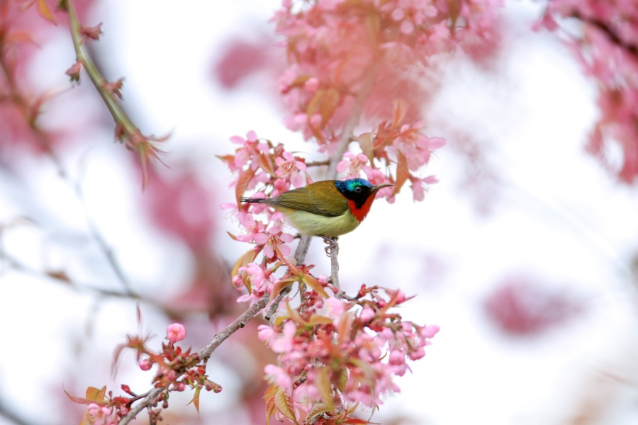 1月22日,龙山县华塘街道象鼻社区,鸟儿在花枝间嬉戏觅食,呈现出一派生机盎然的景象。曾祥辉 摄(湖南图片库)