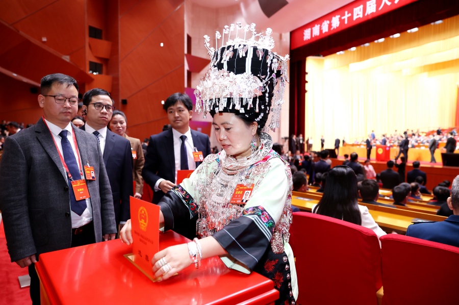 2月7日上午,湖南省第十四届人民代表大会第四次会议在省人民会堂闭幕,代表们热烈鼓掌。