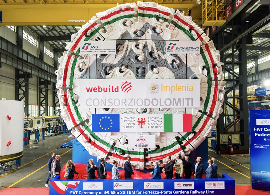 3月26日,即将服务于意大利福尔泰扎铁路隧道项目的国产大型硬岩掘进机在铁建重工长沙第二产业园下线。新华社记者 陈思汗 摄