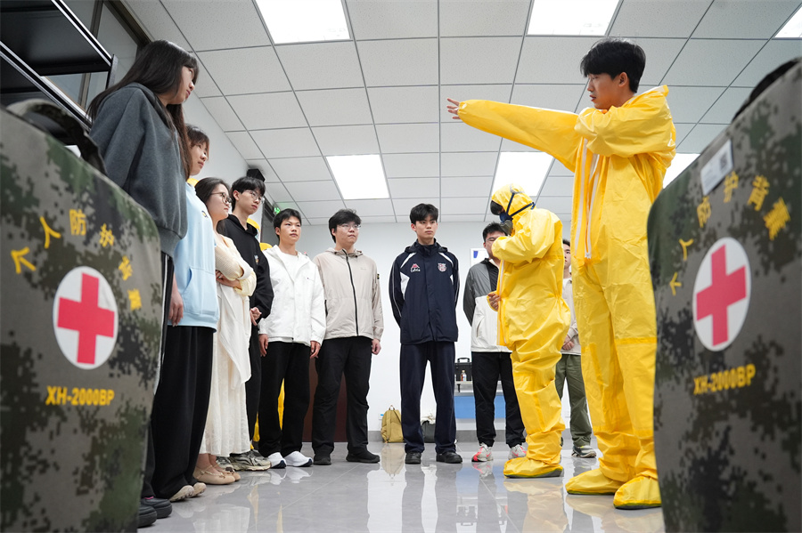 4月14日,南华大学核科学技术学院学生在国家核应急宣传和培训基地参加核应急知识的学习与演练。曹正平 尹陈艳 摄影报道(湖南图片库)