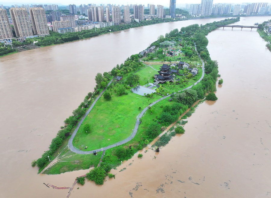 4月22日,湘江衡阳城区段,被洪水围困的衡阳市东洲岛。受强降雨及上游来水影响,湘江干流出现了2026年第一次洪水过程。曹正平 彭征 摄影报道