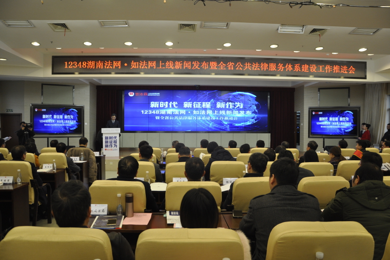 最高人民法院、司法部、省委政法委、省高级人民法院、省检察院、省公安厅、九三学社湖南省委等单位负责同志出席会议,省司法厅党组副书记、副厅长黄春阳发布12348湖南法网·如法网上线的新闻,并介绍如法网的基本功能和主要特点。