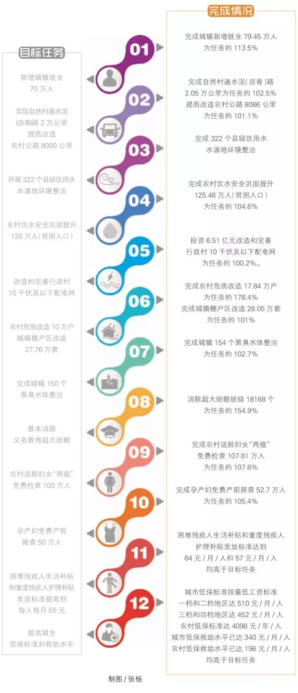 去年初的省十三届人大一次会议上,省长许达哲在政府工作报告中作出庄严承诺:办好12件重点民生实事,让改革发展成果惠及全体人民。