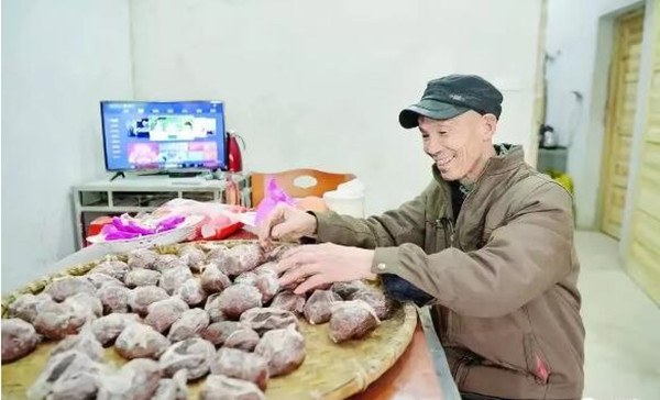 1月21日,衡南县廖田镇曙光村,黄小桃在经过危房改造后的家中准备过年食品。 傅聪 摄