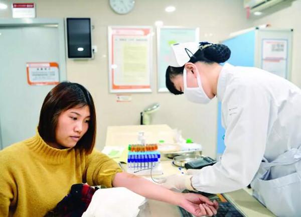 1月23日,长沙市妇幼保健院,孕妇在抽血做免费产前筛查。 傅聪 摄