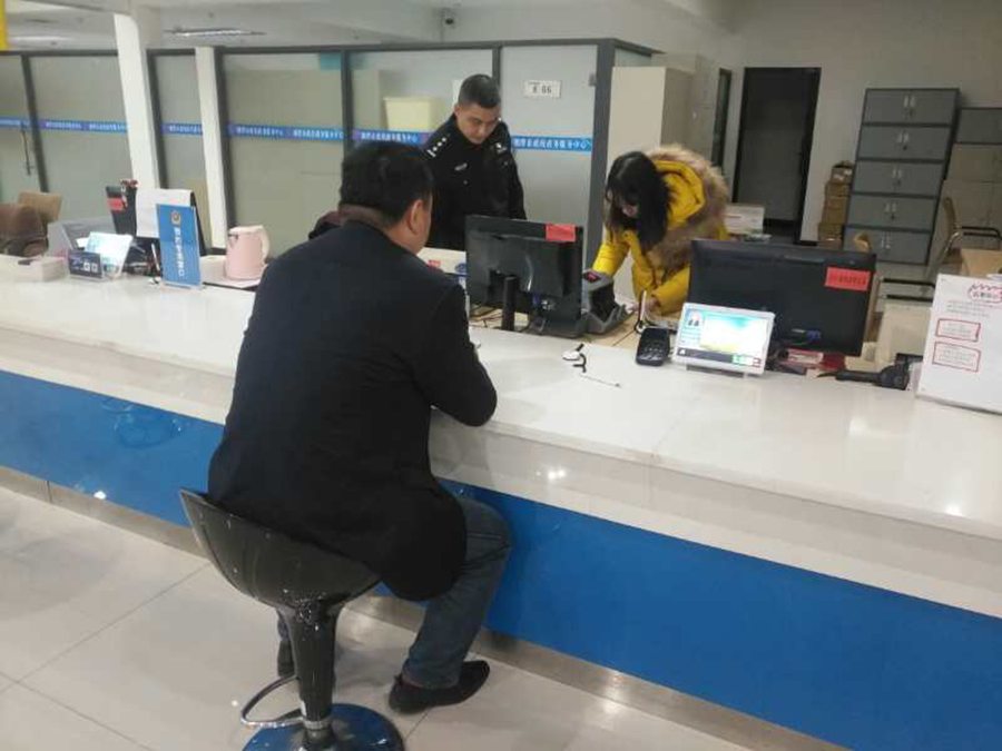 大年三十,湘潭市政府政务服务大厅出入境窗口民警为群众服务。一申请人买了大年初二的票去澳门却发现原港澳签注已过期,所以今天来试试看出入境部门有没有上班,结果非常开心地办好了签注手续。春节期间,市政务服务大厅安排了错时、延时、预约服务值班表,市民只要提前现场、电话预约,就可在预约时间段到大厅来办理业务。