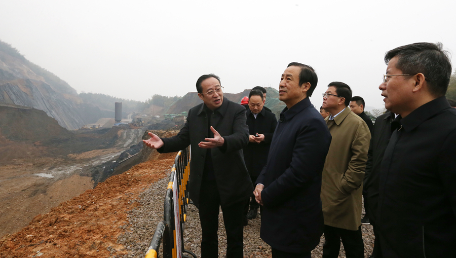 2月28日,省委副书记、省长许达哲赴益阳调研长江经济带生态环境问题整治工作。图为许达哲在赫山区泥江口镇考察宏安矿业环境治理工作。