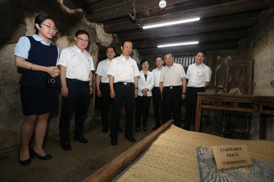 来到“半条被子”故事发生地汝城县文明瑶族乡沙洲村,许达哲一行参观了《“半条被子”的温暖》专题陈列馆和“半条被子”故事发生地旧址,重温习近平总书记在纪念红军长征胜利80周年大会上讲述“半条被子”故事的视频讲话。许达哲说,重温“半条被子”的故事,就是要把人民当作天、当作地,进一步密切与人民群众的血肉联系,真心实意、用心用情解决人民群众关心关切、牵肠挂肚的问题。