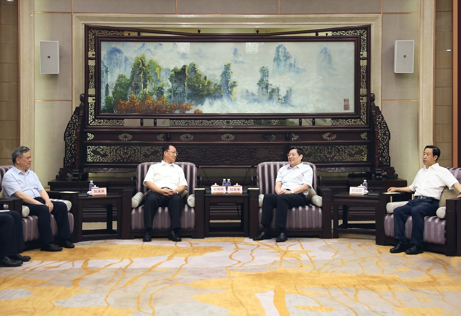 7月1日下午,省委书记杜家毫,省委副书记、省长许达哲在长沙与国家电网有限公司董事长、党组书记毛伟明一行座谈。
