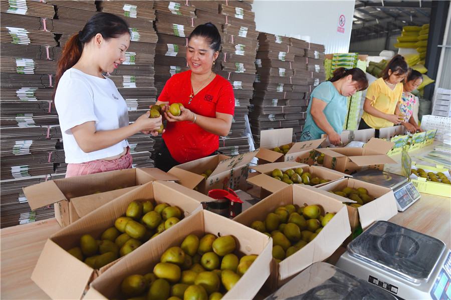 9月1日,平江县梅仙镇三里村峰岭菁华果园,工人在包装猕猴桃。