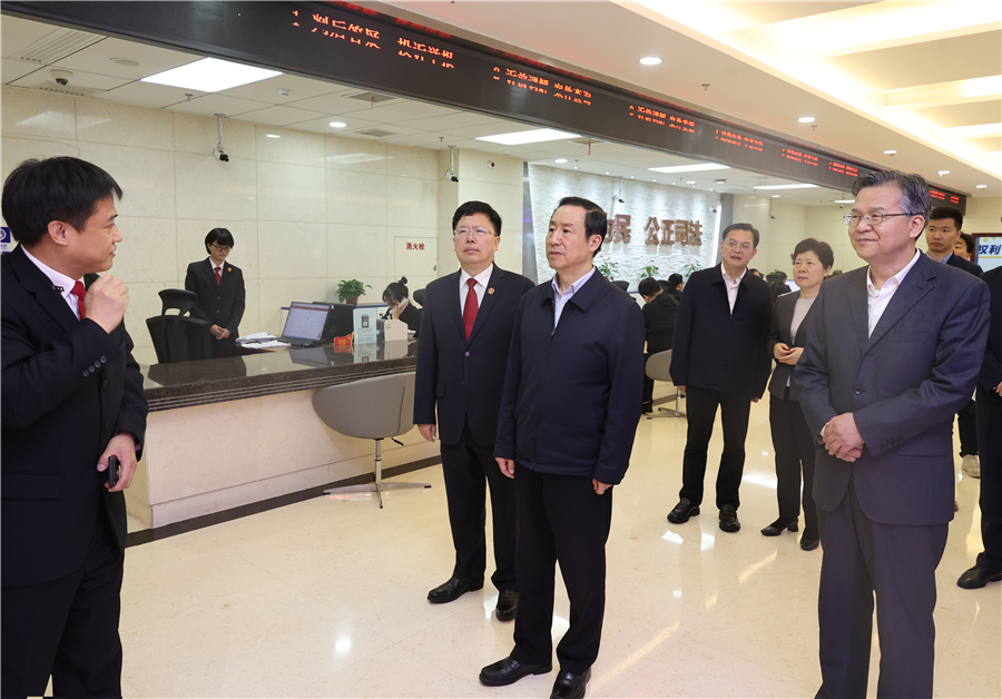 在长沙县法院,许达哲先后走进立案服务区、多元解纷区、司法辅助区、党员活动区,了解该院结合党史学习教育和政法队伍教育整顿,推进智慧服务、“互联网+诉前调解”机制改革、外包服务改革等工作举措成效。得知该院运用信息化技术方便群众诉讼、减轻群众诉累,许达哲表示赞许,他强调,要积极回应群众关切,办好涉民生案件,以群众满意度检验教育整顿实效。