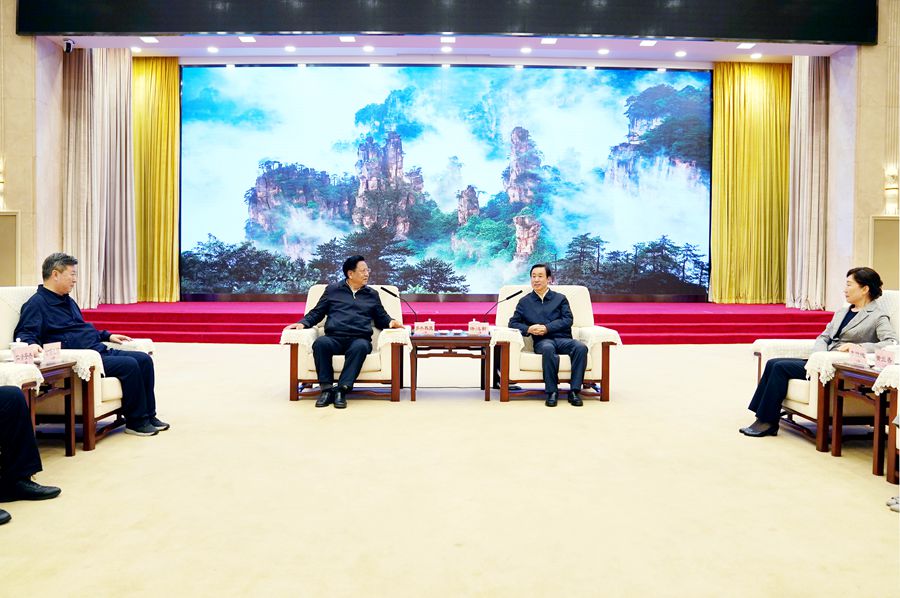 5月18日,省委书记、省人大常委会主任许达哲与在湘调研的青海省政协主席多杰热旦一行座谈。