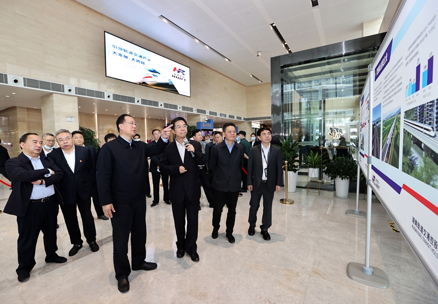 毛伟明在湖南轨道交通控股集团公司调研。