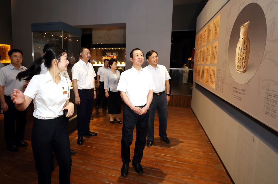 7月20日上午,省委书记、省人大常委会主任许达哲在长沙市望城区调研,并与长沙市领导班子座谈。图为许达哲考察长沙铜官窑博物馆。
