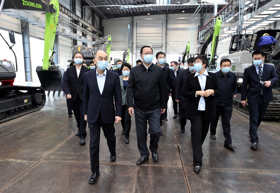 中联智慧产业城是我省年初部署的“十大产业项目”之一,项目布局8个全球领先的灯塔工厂、20条黑灯产线、300条智能产线,将建成全球规模最大、品种最全的工程机械综合产业基地。毛伟明一行走进建设工地,了解项目进展情况。得知土方机械13条智能产线已投产、产值过亿元时,毛伟明说,中联智慧产业城项目建设进度快、科技含量高、带动效应大,取得了阶段性成果。要以大工业、大手笔、大气势,推进项目建设,发挥好项目的战略性、支撑性、带动性作用。要以大格局、大情怀、大视野,加快实现“再造一个中联”的目标,抓好企业、产业、产业链、产业生态“四个着力点”,抢占产业、技术、人才、平台“四个制高点”,引领制造业升级发展、创新发展,引领优势产业集群发展,打造国家重要的先进制造业高地,助推产业兴湘、产业强湘。要聚焦“三生融合”“三态协同”,围绕产业链、产业生态再拓展、再丰富,推进产城一体发展,展示融合之美、力量之美、科幻之美、生态之美、地标之美,全方位呈现现代工业文明之美。中联重科要做工业稳增长的支撑者、产业发展的开拓者、科技创新的引领者、国企改革的示范者,为全省工业经济高质量发展贡献更大力量。