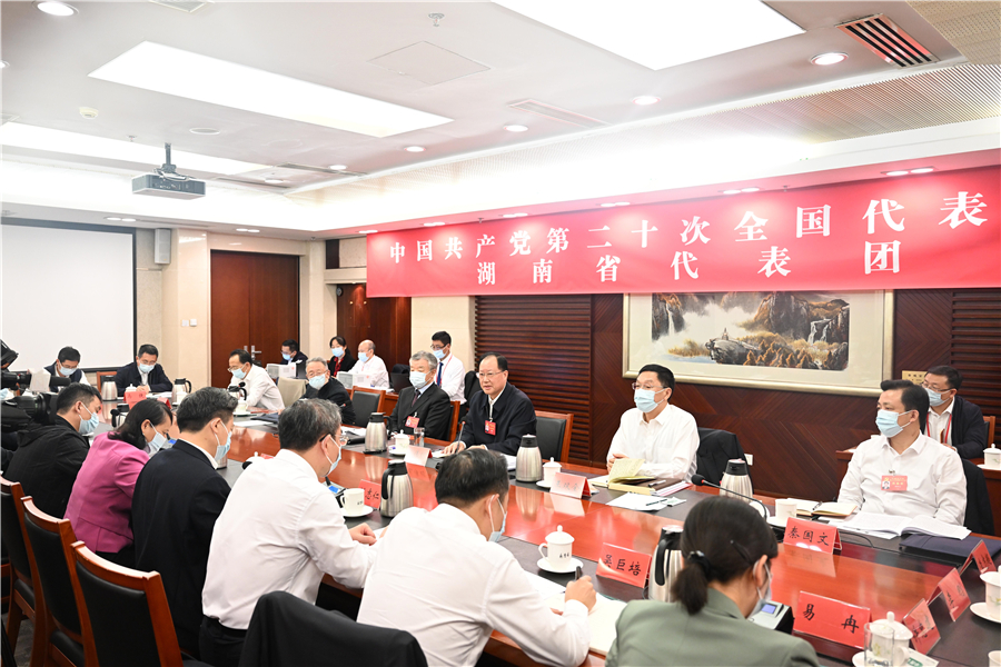 10月16日下午,党的二十大湖南代表团举行分组会议。