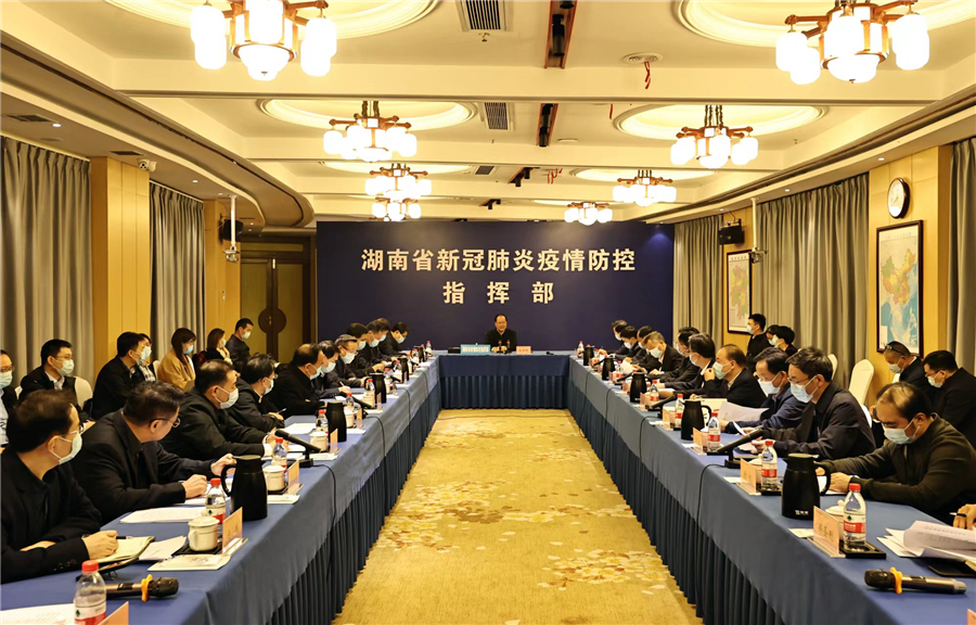 毛伟明指出,要完整准确全面落实党中央决策部署,坚持第九版防控方案、“二十条措施”不动摇不走样,坚决守住不发生大规模疫情的底线。要抓紧动态清零。采取更严格、更彻底、更坚决果断的措施,集中力量打好重点地区疫情歼灭战,尽快实现社会面动态清零;其他散发疫情地区要科学精准划定风险区域并动态调整,严防疫情扩散蔓延,坚决防范疫情外溢出省、出市、出县。要抓细防控举措。坚持“四早”“四最”工作要求,守好输入关口、抓好监测预警、管好重点场所,强化入湘“先报、即查、即检、即管”措施,强化远程检、落地检、常态检“三检联动”,强化养老机构、监所、学校、企业和工业园区、商超农贸市场等重点场所疫情防控。要抓实服务保障。强化资源储备、力量配备和物资准备,用心用情做好隔离人员、外省返湘人员服务保障工作,确保各类生产生活用品稳定供应,最大限度减少疫情对群众正常生产生活的影响。要抓严责任落实。压实属地责任、部门责任、单位责任、个人责任,各级联防联控机制要常态化运转、扁平化管理、一体化协作,各相关部门要扎实做好本行业、本系统的防控工作,筑牢群防群控防线。
