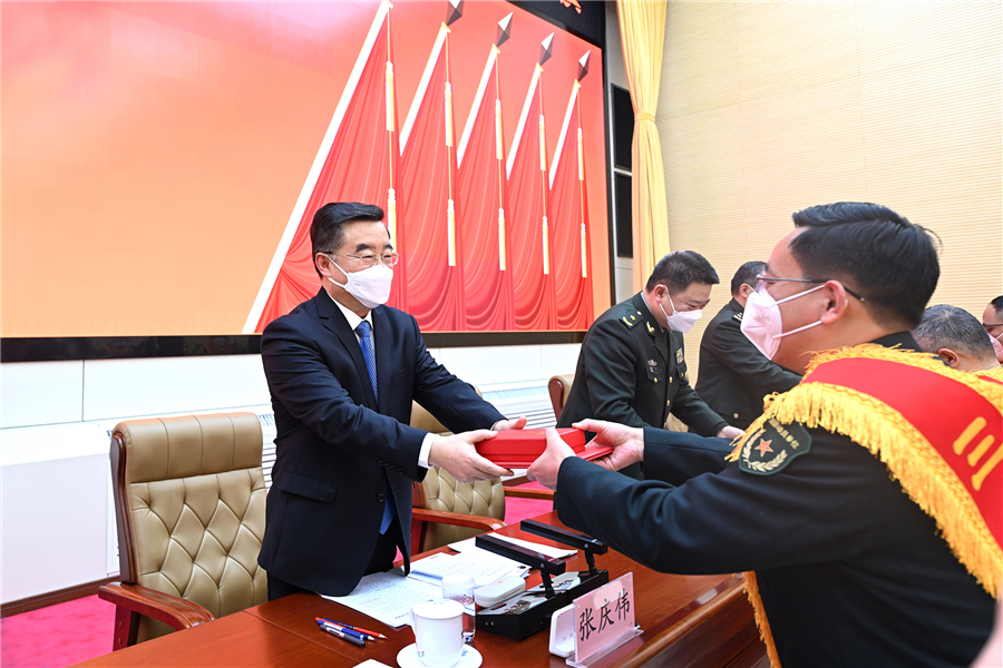 张庆伟强调,2023年是贯彻党的二十大精神的开局之年,是全面建设社会主义现代化国家开局起步的重要一年,也是实施国防和军队现代化新“三步走”战略的关键之年。要始终坚持党的绝对领导,加强理论武装,强化组织建设,提升国动能力,严格落实各项组织生活制度,发扬自我革命精神,加强国防动员实案化准备、实战化训练,不断增强运用党的创新理论推进强军事业的能力和本领,筑牢坚定拥护“两个确立”、坚决做到“两个维护”的思想根基。要聚焦高质量发展首要任务,坚决扛起党管武装政治责任,强化党管武装,加强军地统筹,健全党全面领导国防动员的制度机制,完善对国防动员法规落实情况的监督监察制度机制,在加强省军区建设上取得更大成效。要大力弘扬双拥光荣传统,积极投身经济社会建设,把部队所能、地方所需、群众所盼结合起来,找准服务全面落实“三高四新”战略定位和使命任务的切入口,在抢险救灾、应急处突、乡村振兴、改革创新等任务中勇挑重担、主动作为。各级党委、政府要用心用情为部队排忧解难,把拥军优属作为政治工程,深入贯彻军人地位和权益保障法等法律,健全拥军支前军地协调机制,落实各项优抚政策,广泛开展拥军活动,维护和保障军人军属合法权益。