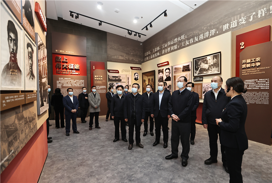 毛伟明在常宁市水口山工人运动纪念馆参观。