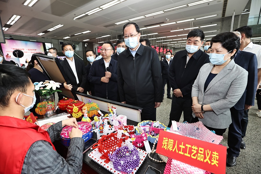 毛伟明来到长沙市人力资源和社会保障局一楼人力资源市场调研。
