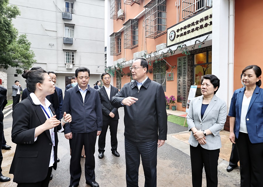 5月23日,省委副书记、省长毛伟明在长沙市开福区社会福利中心调研。