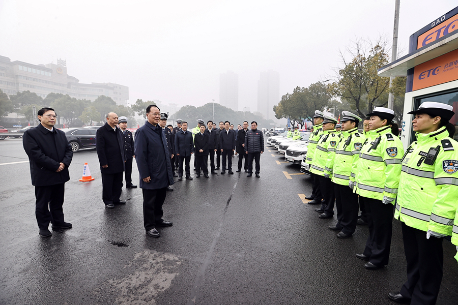 2023年12月30日,毛伟明在杭长高速长沙收费站执勤点看望省高速交警长沙支队星沙大队值班值守民警。