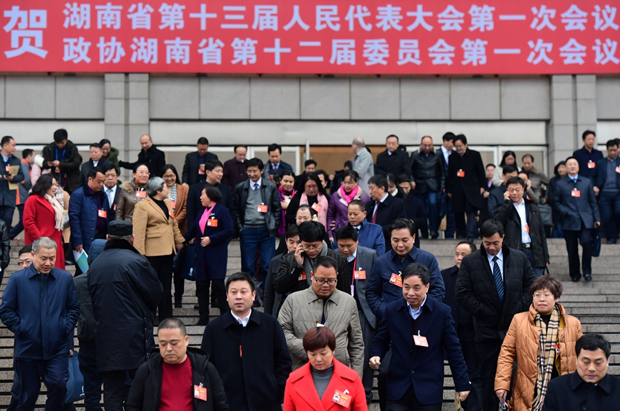 1月27日,代表们在认真审议省人大常委会工作报告。湖南日报记者 赵持 摄